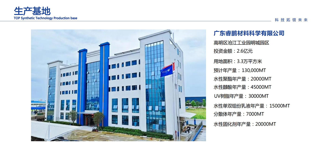 广东拓普合成科技股份有限公司位于佛山市顺德区大良街道,始建于1999年,是一家集研发、生产、销售为一体的科技型集团公司 ,主要经营危险化学品原材料,及含溶剂油的合成树脂、油漆、辅助材料、涂料制品,且具备自主经营进出口经营权,致力开展海外树脂业务。